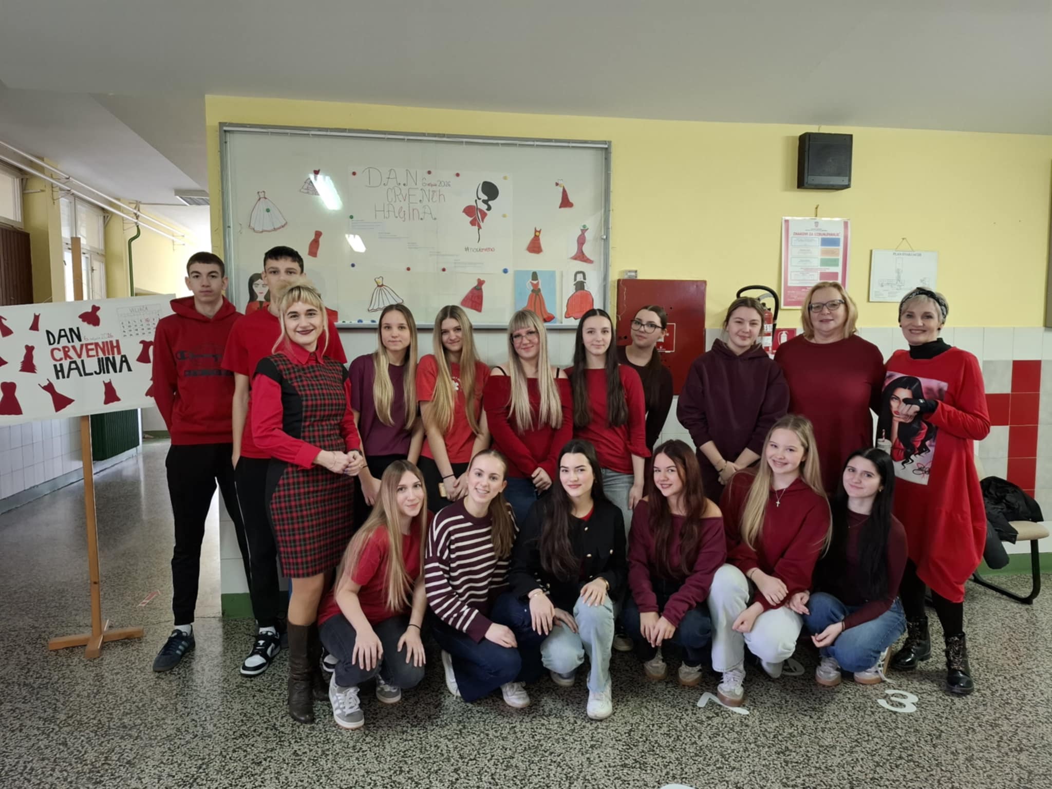 Obilježavanje Dana crvenih haljina upriličili smo u našoj školi kroz niz aktivnosti. Učenici 2. i 3. razreda ekonomske škole, u pratnji svojih nastavnica Tatjane Andraković i Kristine Najcer Bračevac aktivno su se uključili u javnozdravstvenu akciju „Dan crvenih haljina“, koja se tradicionalno obilježava radi podizanja svijesti o specifičnostima moždanog udara kod žena. Program obilježavanja započeo je već 2. veljače 2026., kada su učenici sudjelovali u kreativnoj likovnoj radionici organiziranoj u suradnji sa Savezom mladih iz Valpova. Na radionici su kroz umjetnički izričaj interpretirali važnost očuvanja zdravlja i prevencije bolesti. Izložbu učeničkih radova možete pogledati u hodniku škole.  Aktivnosti su se nastavile unutar škole kroz nekoliko ključnih koraka. Izrada edukativnih materijala, gdje su učenici 2. razreda ekonomskog smjera  izradili prigodne plakate koji krase školske hodnike, a koji informiraju o simptomima moždanog udara i važnosti pravovremene reakcije.