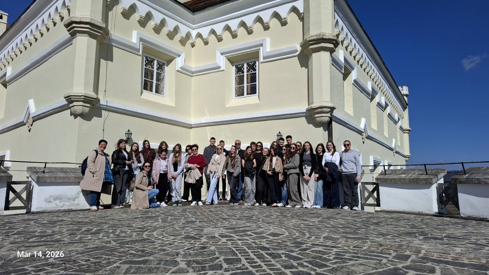 Dana 14. ožujka 2026. učenici 1. OG a, 1. OG b i troje učenika 3. OG razreda sudjelovali su u izletu u Trakošćan i Krapinu. Putovali su uz pratnju profesora D. Pisačića, koji je i organizirao ovu terensku nastavu, razrednica T. Weigand i J. Iličić te profesorice R. Jokić.