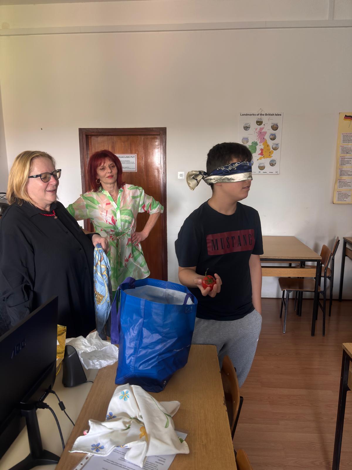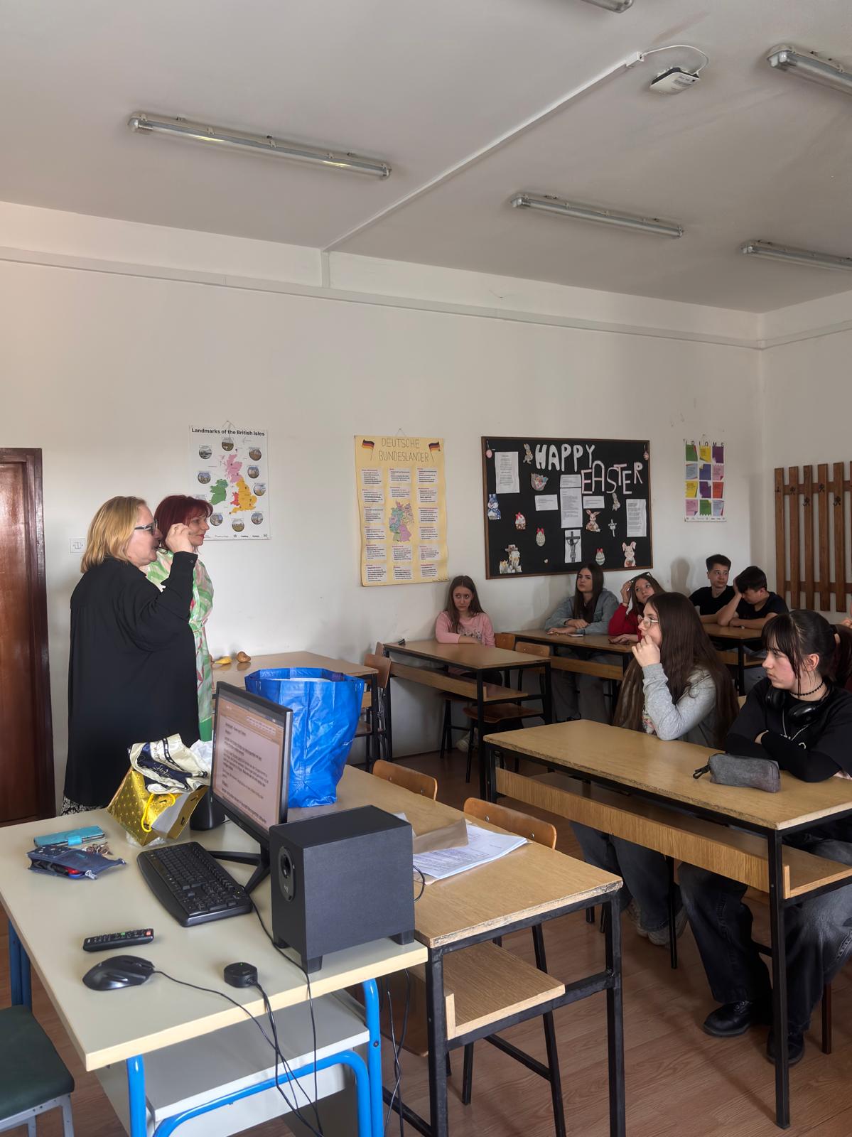 Na poziv učenika 1.og a SŠ Valpovo i njihove profesorice njemačkog jezika, Snježane Simić, njihova bivša nastavnica, a nekima i razrednica, kolegica Anita Jelić,  sa desetak učenika koji uče njemački jezik kao izborni premet u osnovnoj školi, prisustvovala je radionici Essen und Trinken.