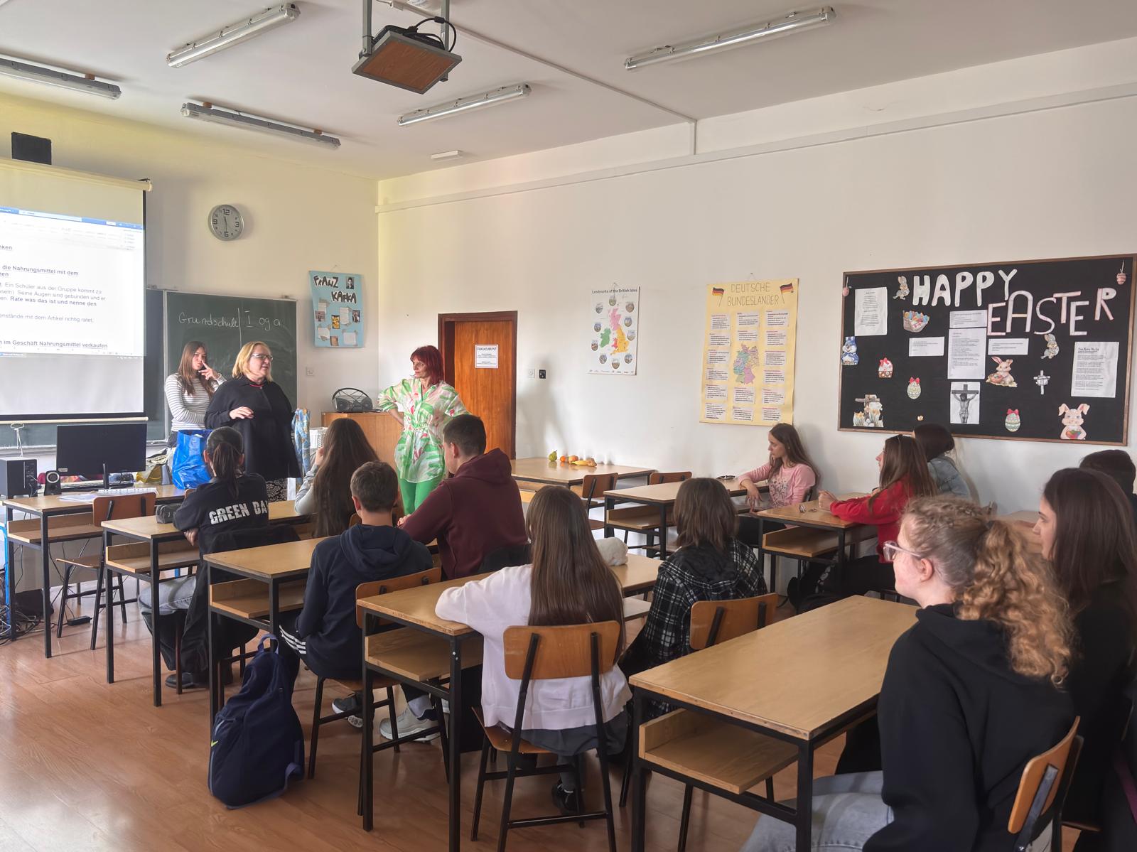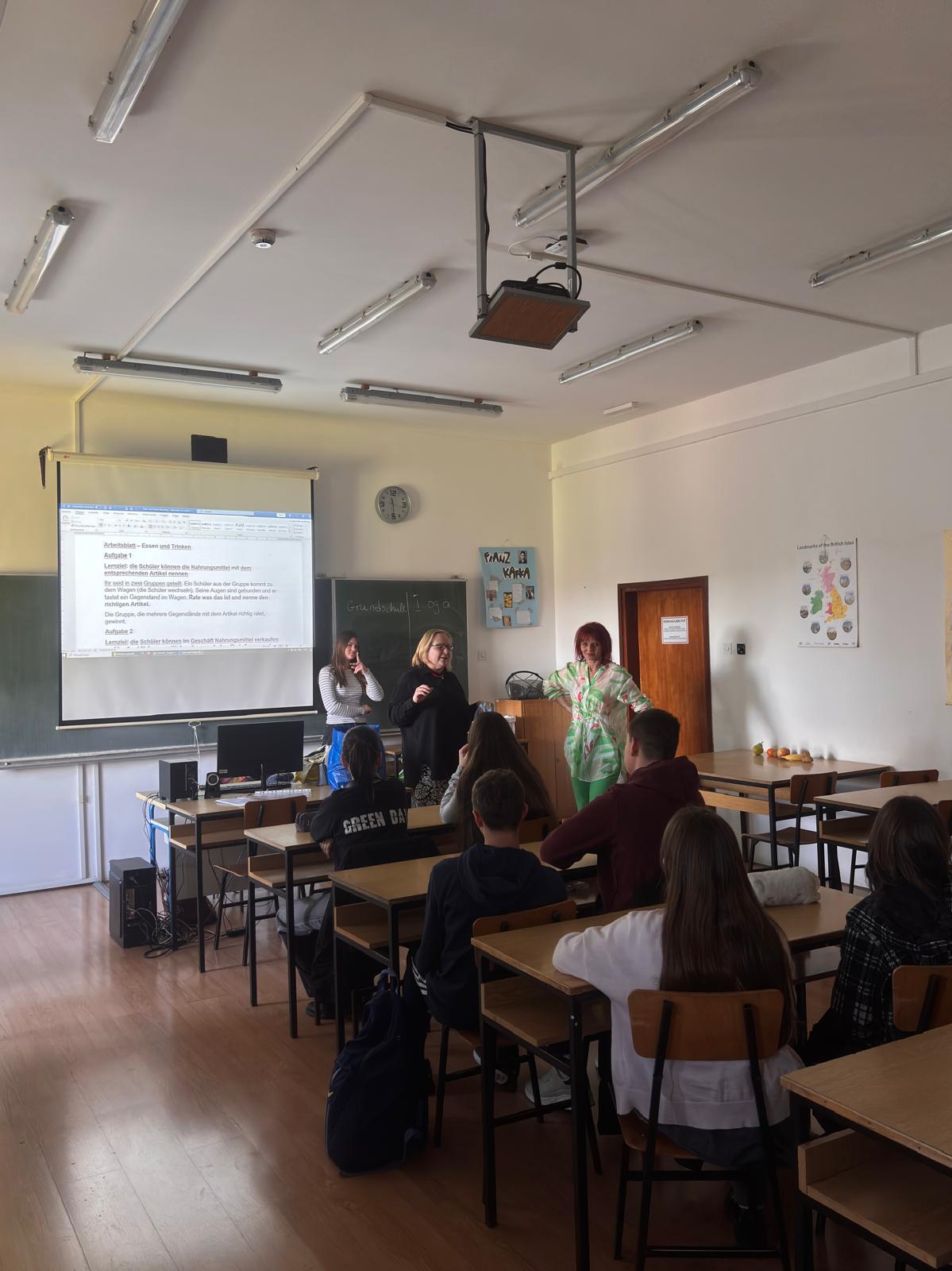 Učenici su na zanimljiv način i kroz igru, zajedno s učenicima srednjoškolcima, ponavljali nazive jela i pića na njemačkom jeziku, u simuliranoj situaciji glumili da su kupci i prodavači u trgovini, a naposljetku si je svaki učenik mogao uzeti jednu namirnicu ili piće uz obrazloženje zašto uzima  baš tu namirnicu. I to se sve trebalo reći na njemačkom jeziku. Upravo realne i prave namirnice i nešto bezalkoholnih napitaka su bili razlog zašto je broj učenika iz OŠ Ivan Kukuljević Belišće bio ograničen na desetak učenika. Inače je kolegica Jelić ranijih godina dolazila s puno većim brojem učenika, a i ove ih je godine sveukupno dakako više na satima njemačkog jezika.