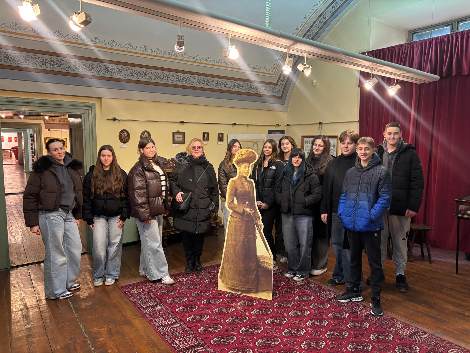 Inače, to nije jedina malo drugačija aktivnost koju su imali učenici 1. og a. Naime početkom drugog polugodišta su, zajedno sa svojom profesoricom njemačkog, Snježanom Simić, posjetili dvorac Prandau – Normann i Muzej Valpovštine, gdje su se, uz stručno vođenje gospodina Stjepana Vidakovića, upoznali s poviješću i ostavštinom plemićke obitelji Prandau – Normann i njihovim potomcima. I to je već na neki način postala tradicija, jer svaki prvi razred učenika početnika iz njemačkog jezika odlazi s profesoricom njemačkog u Muzej Valpovštine upoznati se malo s poviješću obitelji koja je do II svjetskog rata živjela u Valpovu, a grofica Julijana sve do 1952. godine. To se čini u sklopu nastavne cjeline i teme Meine Familie. Učenici su bili zadivljeni načinom pričanja priče i pristupom gospodina Stjepana Vidakovića, inače glavnom i odgovornom osobom u Muzeju, stoga mu od srca zahvaljujemo što uvijek nađe vremena za naše učenike. A kao dokaz da smo i tamo bili, prilažemo ovu fotografiju.